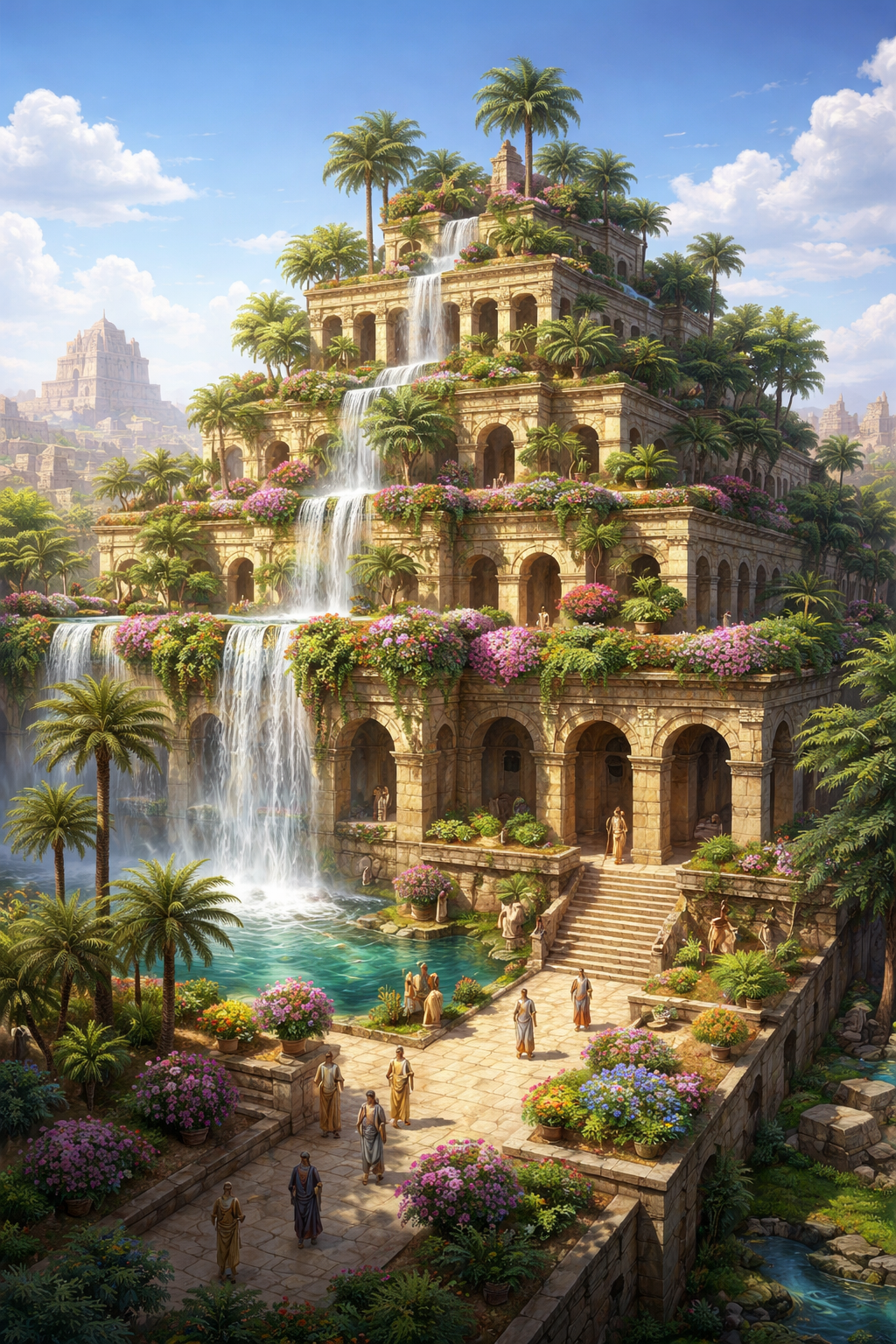 Descritos como jardins em terraços elevados, com um sistema de irrigação extremamente avançado para a época.