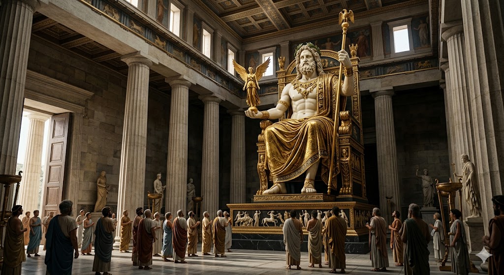 Uma representação gigantesca do deus Zeus.