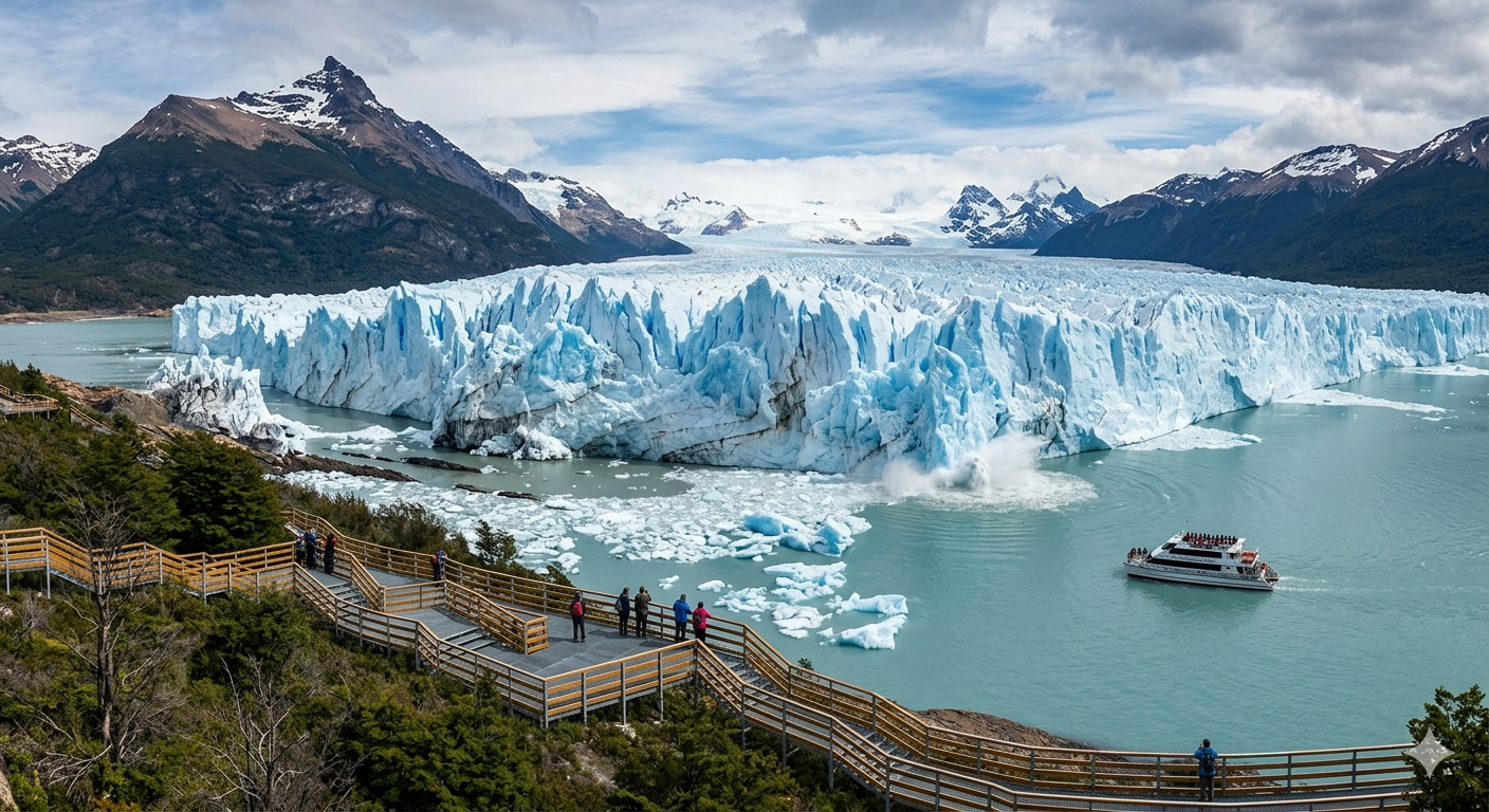 Localizado na Patagônia, o Perito Moreno é uma das geleiras mais impressionantes do mundo. Diferente da maioria, ele continua avançando — o que torna o fenômeno ainda mais raro.